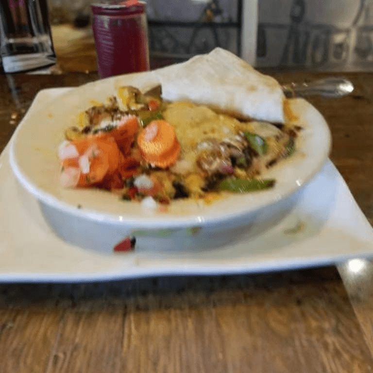 Lean sirloin steak in tequila cream sauce with corn and mushrooms. Served with rice and beans, pico de gallo, and pickled carrots