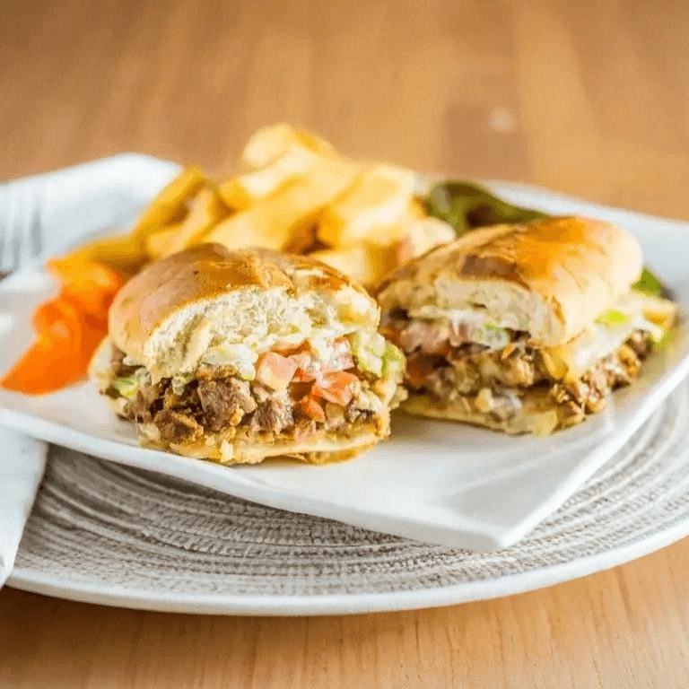 Top sirloin diced and grilled to perfection, mayonnaise, onions, tomatoes, lettuce, sour cream, cheese, and jalapenos on a sweet French roll. Street style tortas