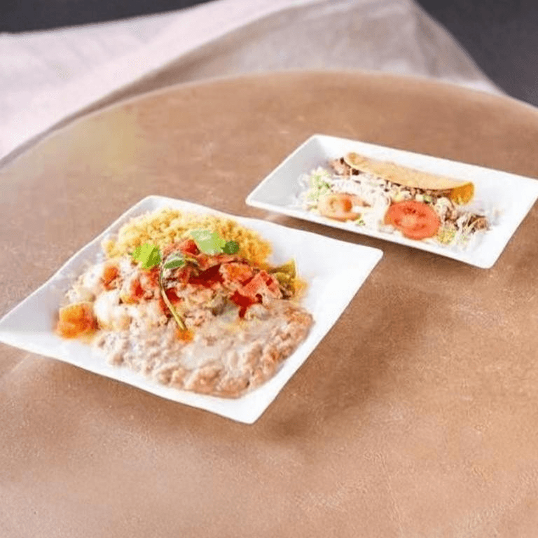 Soft or crispy tacos with your choice of meat. Topped with lettuce, Cotija cheese, and taco sauce. Served with rice and beans, pico de gallo, pickled carrots, and Cotija cheese