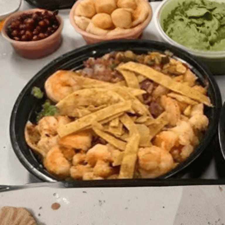Shrimp, melted cheese, mushrooms, onions, chile pasilla, corn, pico de gallo